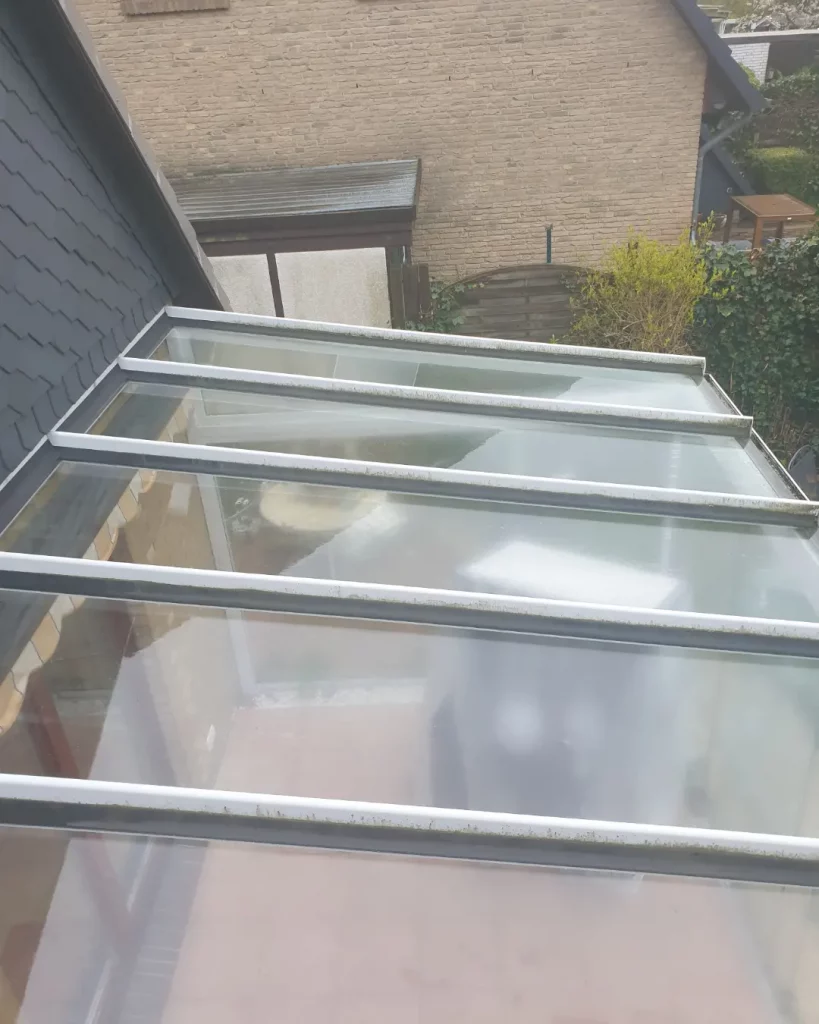 Ihr Terrassendach verdient beste Pflege! Mit unserer Terrassendachreinigung entfernen wir Schmutz, Algen und Moos gründlich und schonend, damit Sie Ihre Terrasse in vollen Zügen genießen können.